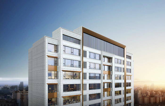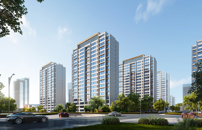 住宅立面線條,簡約流暢、輪廓分明,不同地塊建筑色彩分區(qū)規(guī)劃,結(jié)合低彩度、高明度的米白、暖白、香檳金等色彩,形成豐富有序的色彩組合。在近人尺度部位、檐口、頂部造型等,采用金屬鋁板、金屬線條等高品質(zhì)材料打造,彰顯匠心精致,體現(xiàn)時代精神。
