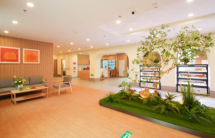 在適老化空間,我們結(jié)合老年人行為、心理等特性,認(rèn)為在康氧環(huán)境中設(shè)置無(wú)障礙設(shè)施尤為重要,不僅僅體現(xiàn)于無(wú)障礙通道或電梯,還包括視線監(jiān)視與近便的服務(wù)動(dòng)線設(shè)計(jì)。