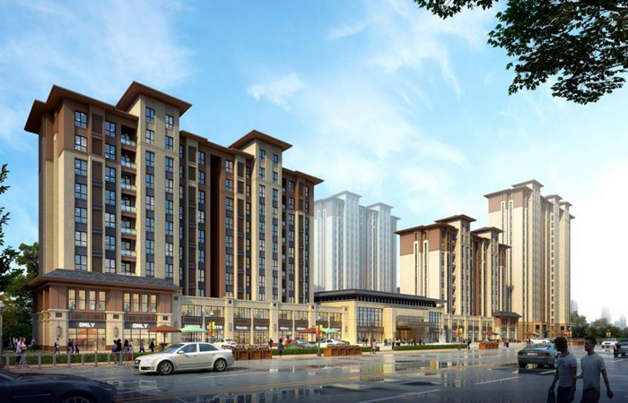 本方案受地形和日照的限制,整體布局為橫向兩排建筑,源于對(duì)中國(guó)古典院落的空間追求,形成中軸對(duì)稱,有收有放的空間院落體驗(yàn),北側(cè)130m的開(kāi)敞廣場(chǎng),既為城市提供了足夠的居民活動(dòng)場(chǎng)所,又為項(xiàng)目本身營(yíng)造一個(gè)開(kāi)敞的前院空間。項(xiàng)目采用混合式空間布局,形成一道錯(cuò)落有致的城市天際線。