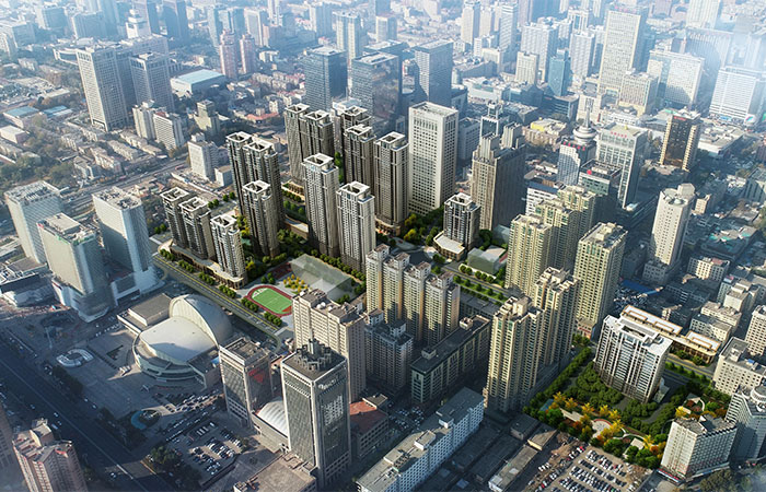 規(guī)劃結(jié)合項(xiàng)目用地情況,分為BDEFH五個(gè)地塊,通過點(diǎn)板結(jié)合的多層次圍合式布局方式,打造疏密得當(dāng)、主次分明的規(guī)劃和景觀結(jié)構(gòu)體系;通過建筑群體高低錯(cuò)落的布置,打破永安街兩側(cè)全為高層的規(guī)劃布局,局部形成開闊的視線通廊,整個(gè)片區(qū)高區(qū)低區(qū)交錯(cuò),空間疏密有致,避免形成單一的城市規(guī)劃形態(tài),形成總體北高南低,舒朗有度的城市天際線變化;項(xiàng)目通過小學(xué)、幼兒園等配套設(shè)施的合理布局,保障區(qū)域的教育配套設(shè)施;同時(shí),在地塊中心部位結(jié)合綠化景觀打造沿永安街特色商業(yè)步行街,重塑區(qū)域形象,實(shí)現(xiàn)對(duì)街道的更新與生長(zhǎng)。