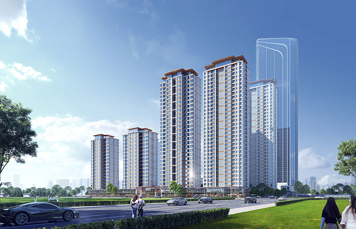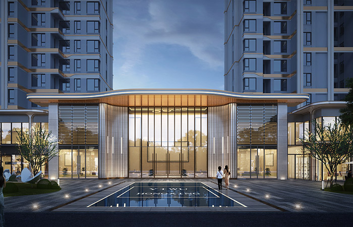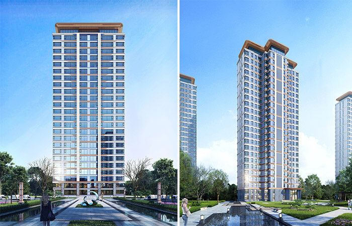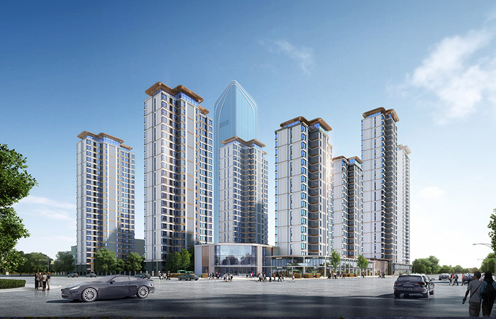 依托石家莊源遠流長的文化底蘊,弘揚傳統(tǒng)文化的同時塑造城市新名片。建筑立面靈感來源于傳統(tǒng)器物美學(xué),引入“行云如意”的設(shè)計理念,打造具有文化內(nèi)涵的城市核心地標(biāo)。塔樓造型的對稱手法,視覺上強化了內(nèi)聚和向心力的群組感,在城市空間中脫穎而出,成為槐安路的地標(biāo)性建筑。住宅立面延續(xù)公建塔樓的設(shè)計語言,賦予建筑流暢柔美的姿態(tài)。