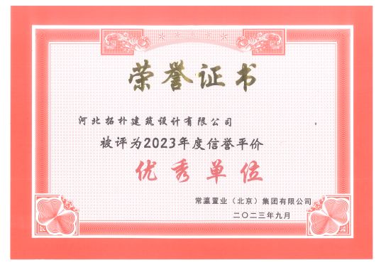 常瀛置業(yè)信譽度評價優(yōu)秀單位