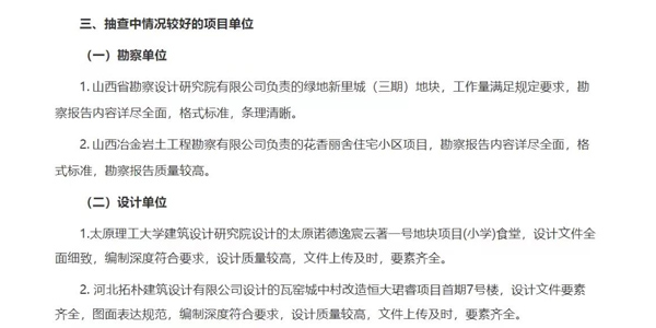 本次被檢查的設(shè)計單位中僅有2家得到山西住房和城鄉(xiāng)建設(shè)局的好評,