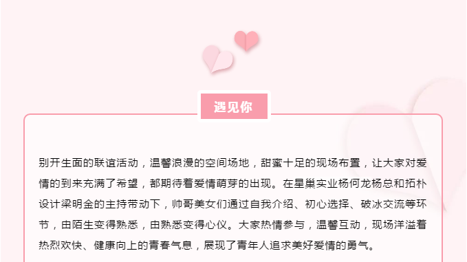 以“心動大者 緣定今生”為主題的青年聯(lián)誼交友會。遇見你預(yù)見愛,開啟你的心動模式。