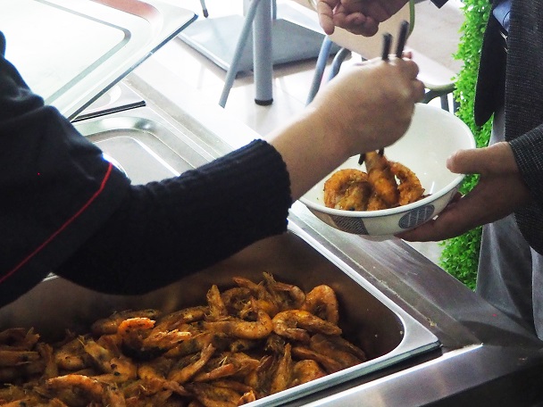 飯點一到,大家就都開始有序排隊選餐,工作一上午,