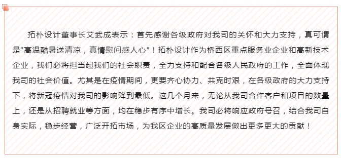 拓樸設(shè)計(jì)董事長艾武成向副區(qū)長趙月芬等領(lǐng)導(dǎo)匯報(bào)了我司的疫情防控工作及公司的經(jīng)營發(fā)展情況,