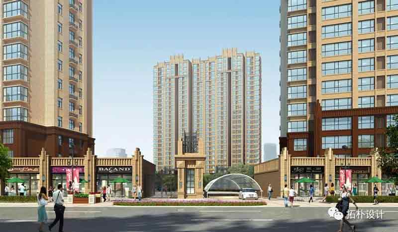 項目建筑采用ART-DEC0建筑風(fēng)格,盡顯華貴堅實、 細(xì)部裝飾細(xì)膩豐富。通過采用剛?cè)岵?jì)的豎向線條,建筑高聳向上的外立面,體現(xiàn)出建筑奢華、精致、大氣的氣度,能夠表達(dá)出居者不斷向上,積極進(jìn)取的精神。