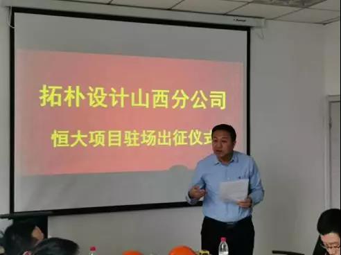 2019年3月26日,拓樸設計山西分公司恒大項目駐場出征儀式如期舉行,總公司執(zhí)行總經理李玉軍、恒大總工室領導等人一同參加了此次出征儀式,為山西分公司戰(zhàn)友出征加油助威。