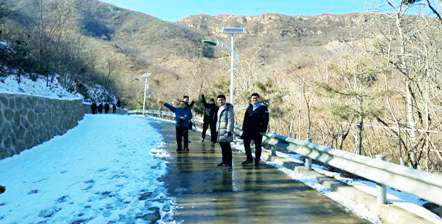 2019年2月16日,石家莊的白雪初化,陽光已是分外溫暖,正值開工的第一個(gè)周末,設(shè)備所舉行了西山森林公園登高戲雪活動(dòng)。此時(shí)的西山森林公園內(nèi),半幅道路的雪已被清掃,半幅留有一些,空氣優(yōu)良,視野開闊,是登高舒意的絕好去處。