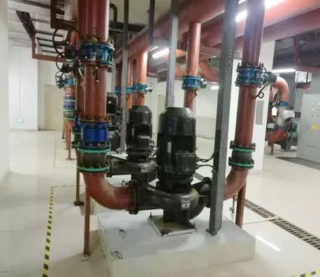 該項(xiàng)目總建筑面積110000m2,總占地面積18666 m2。制冷機(jī)房由離心式冷水機(jī)組,螺桿式冷水機(jī)組,冷凍水循環(huán)泵,定壓補(bǔ)水裝置,全自動(dòng)軟化水裝置,軟化水箱,方形玻璃鋼冷卻塔等組成。