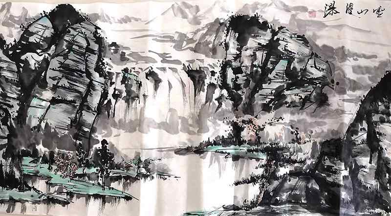繪畫《雪山漫瀑》