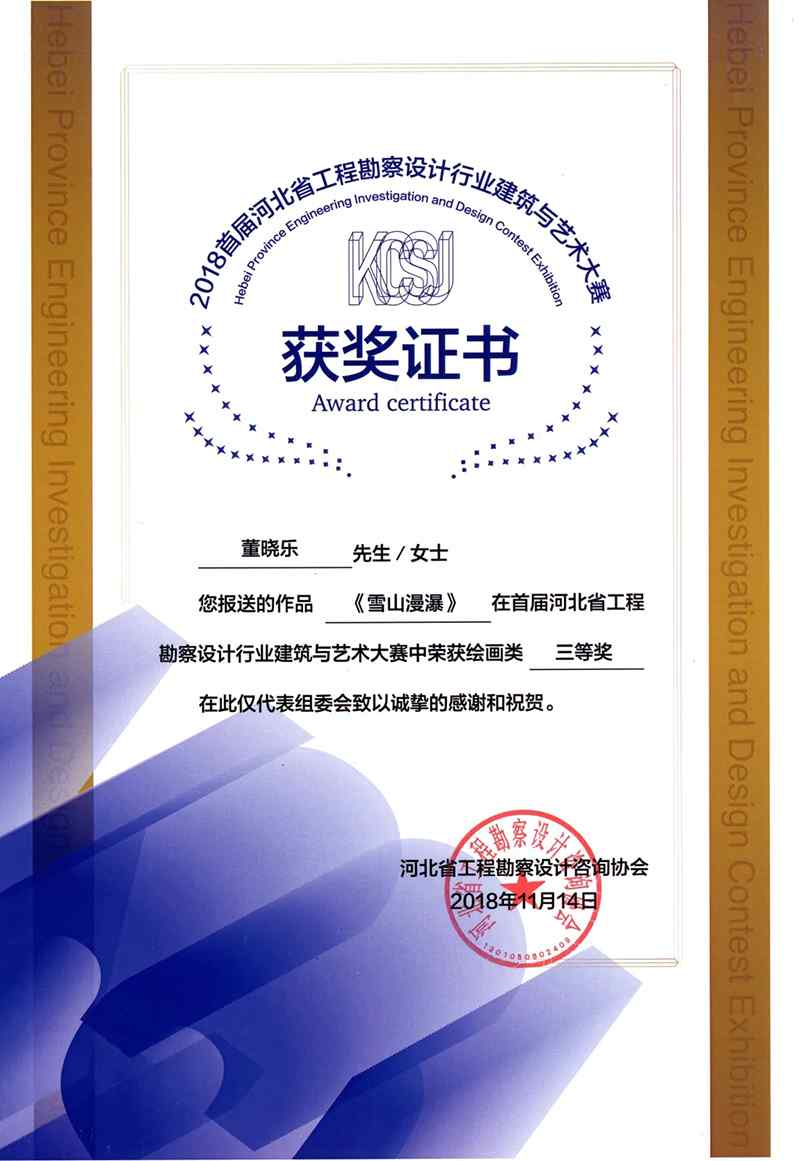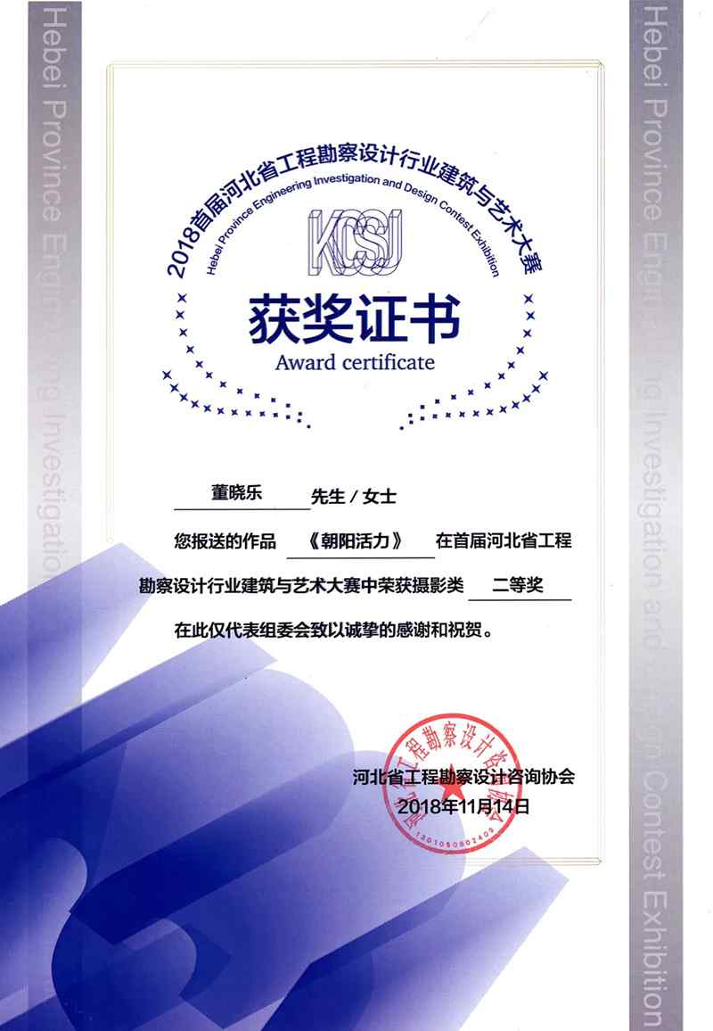 還記得今年8月份的首屆河北省勘察設(shè)計行業(yè)建筑與藝術(shù)大賽嗎?我公司積極參加,提交了數(shù)份優(yōu)秀作品。經(jīng)過各路大咖的激烈角逐,大賽組委會的層層選拔,我公司榮獲本屆大賽的優(yōu)秀組織獎,創(chuàng)研所董曉樂提交的兩幅作品分別獲得手機攝影類二等獎及繪畫作品類三等獎。
