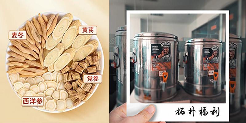 ? 四寶湯茶由黨參、黃芪、麥冬、西洋參精心配制而成,這些中藥材不僅具有很好的清熱解暑效果,還能夠增強(qiáng)身體免疫力,提升員工的身體健康水平。在驕陽(yáng)似火的夏日,一碗清爽的綠豆湯,一杯養(yǎng)生的四寶湯茶,無(wú)疑為員工們送上了一份清涼,也為他們的身體健康筑起了一道堅(jiān)固的防線。