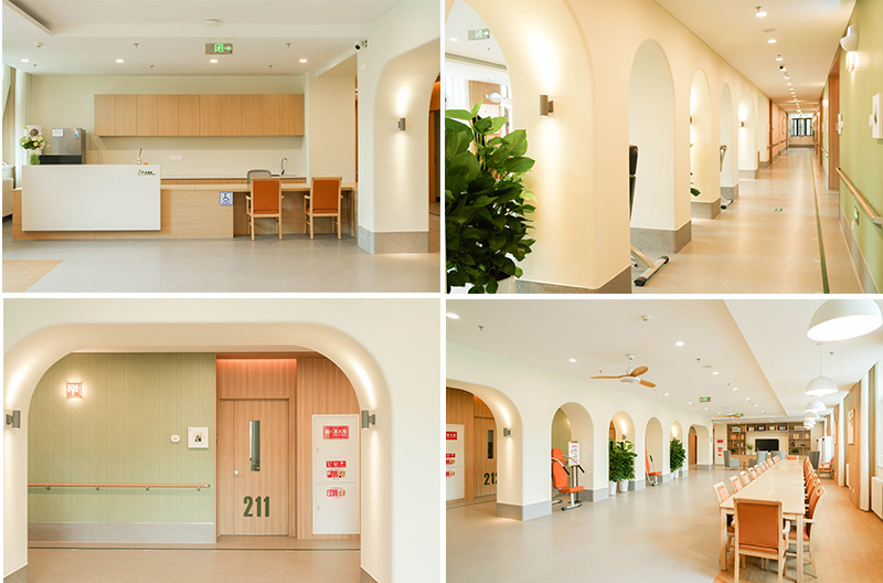在適老化空間,我們結(jié)合老年人行為、心理等特性,認(rèn)為在康氧環(huán)境中設(shè)置無障礙設(shè)施尤為重要,不僅僅體現(xiàn)于無障礙通道或電梯,還包括視線監(jiān)視與近便的服務(wù)動線設(shè)計。