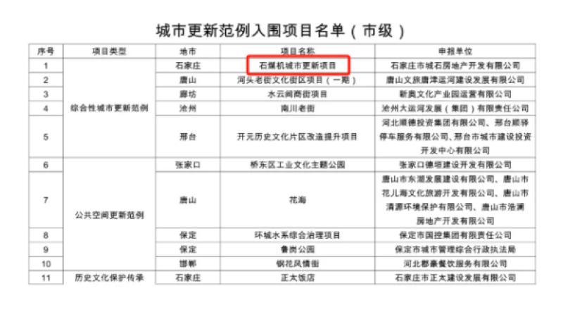 喜訊|城發(fā)投石煤機(jī)城市更新項(xiàng)目入圍河北省城市更新范例
