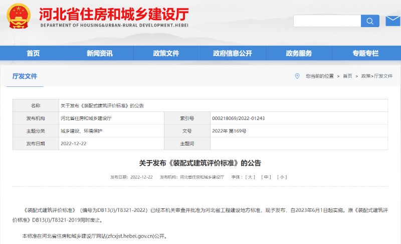 2023年6月1日開始執(zhí)行新的《裝配式建筑評價(jià)標(biāo)準(zhǔn)》DB13(J)T8321-2022